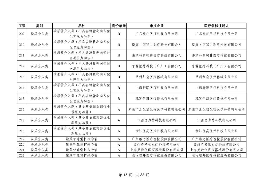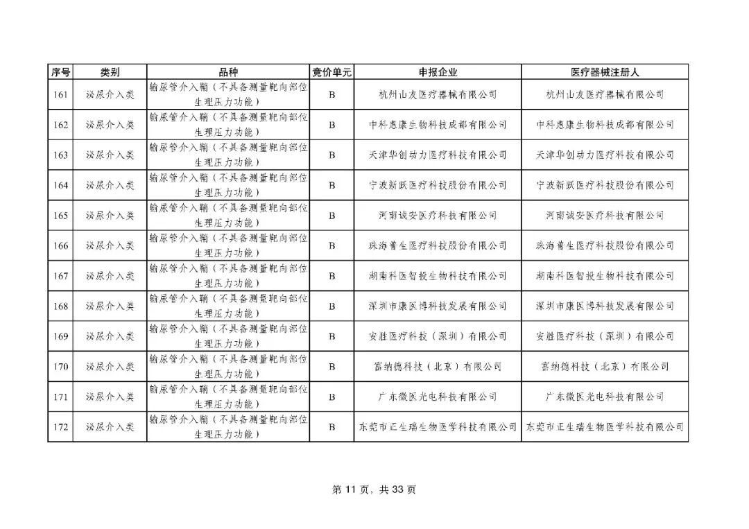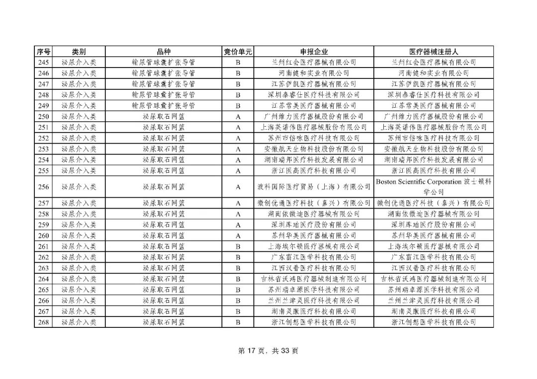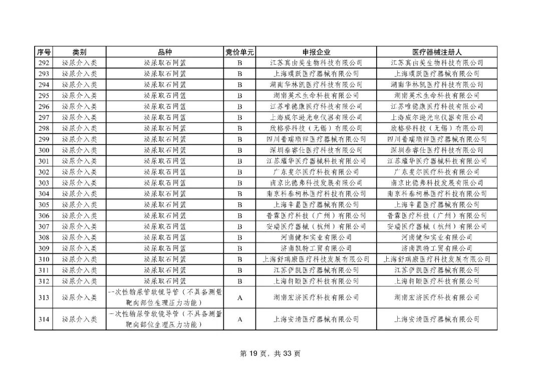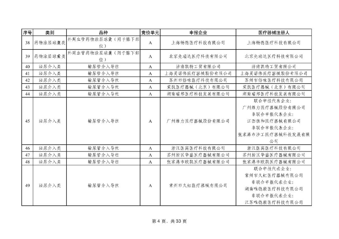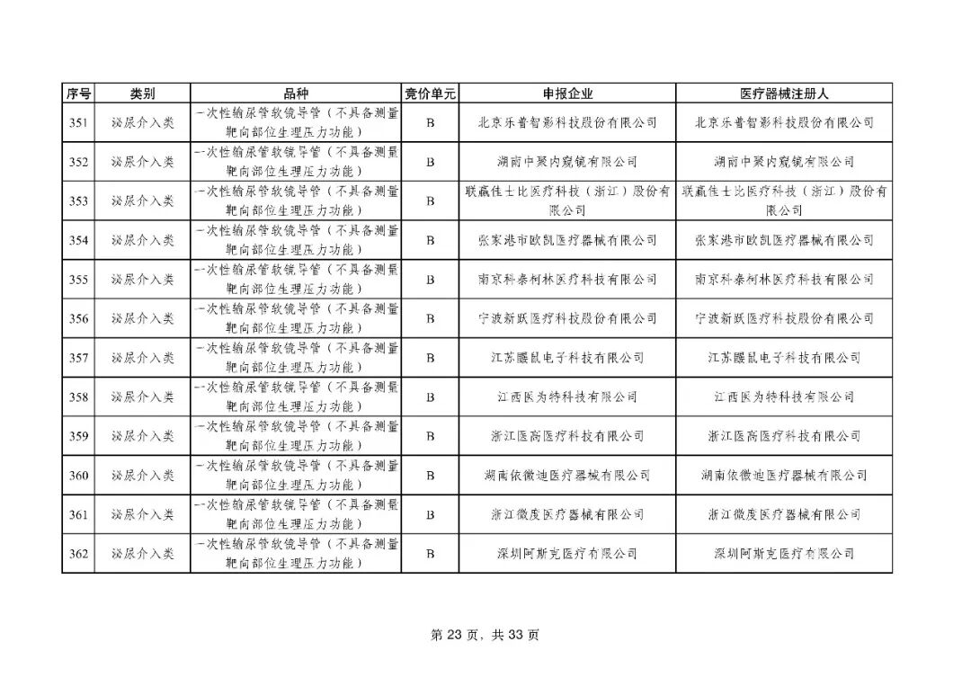 泌尿介入类耗材用于结石取石手术,此前为集采 “空白区”,此次 195 家企业的 454 个产品投标,170 家企业的 398 个产品中选,药物刻痕球囊、测压软镜导管等特殊功能产品也成功中选,可满足临床特殊场景需求。