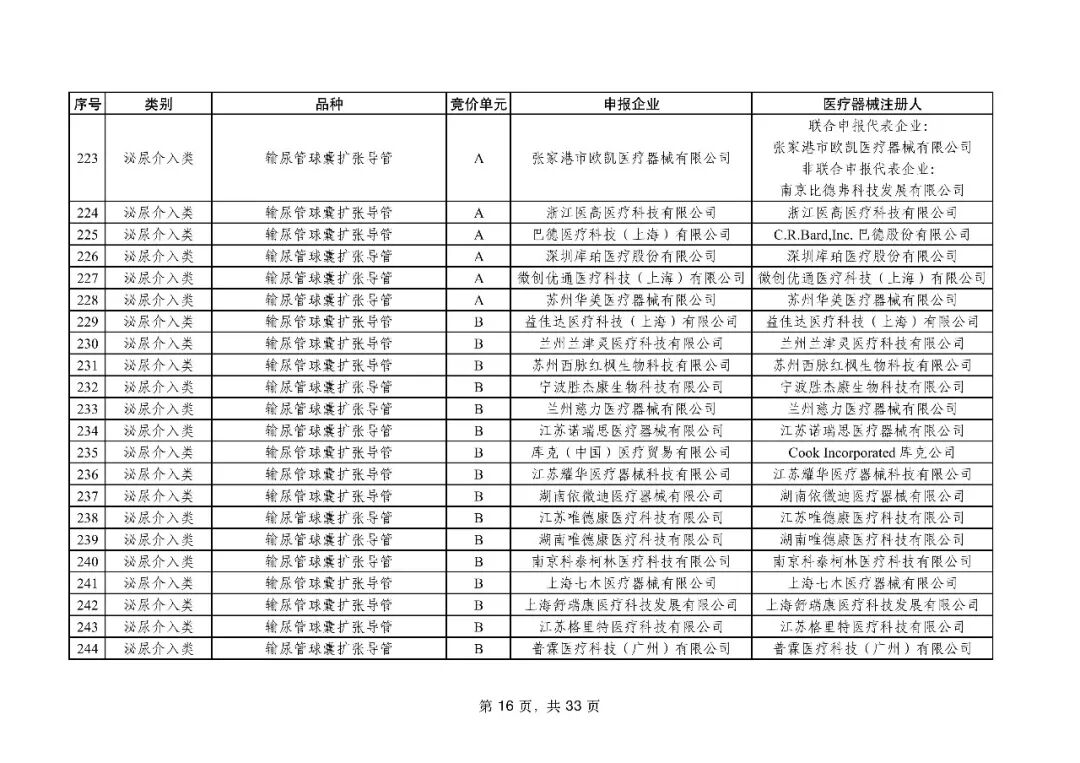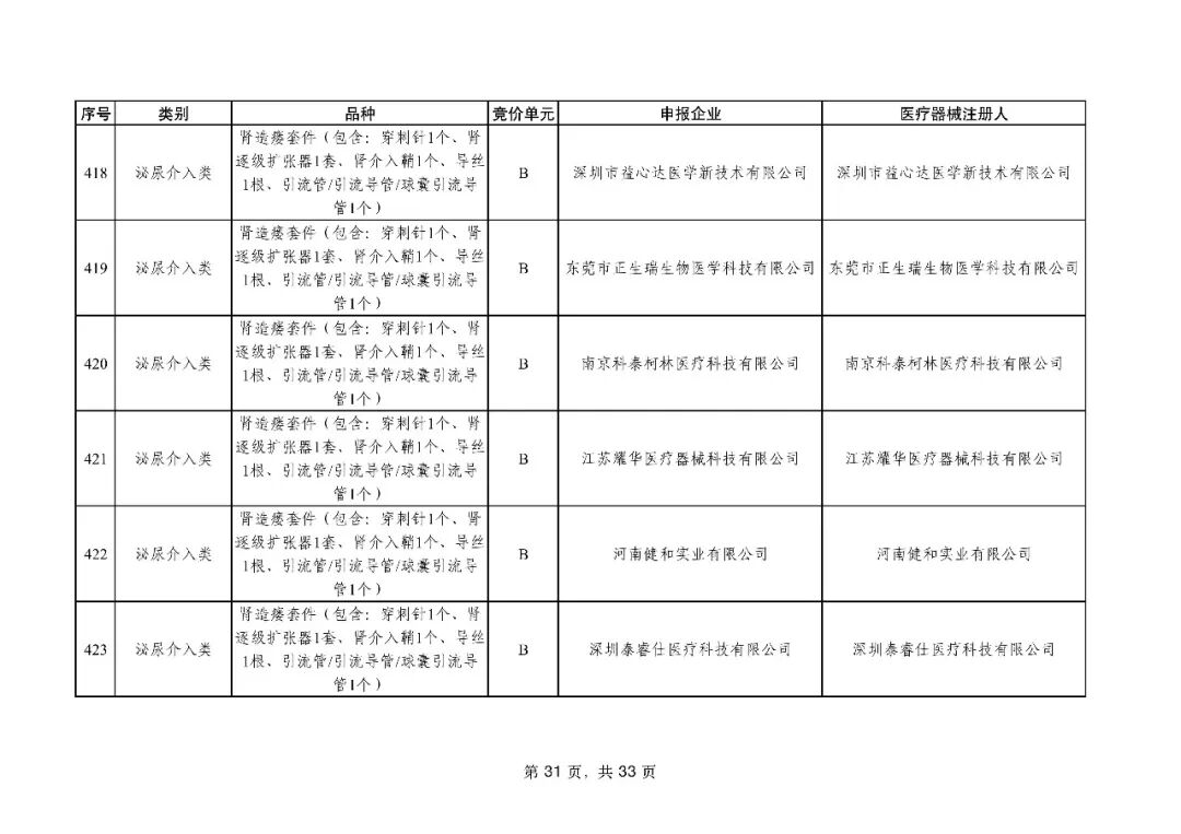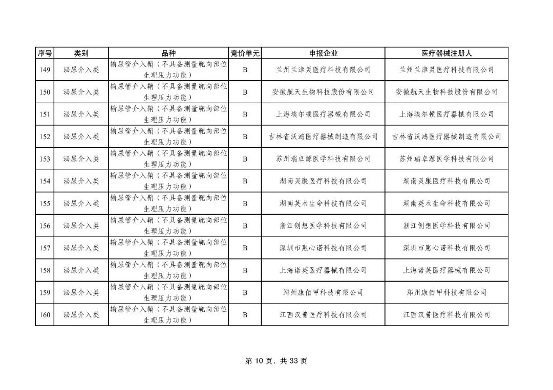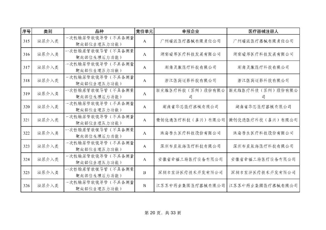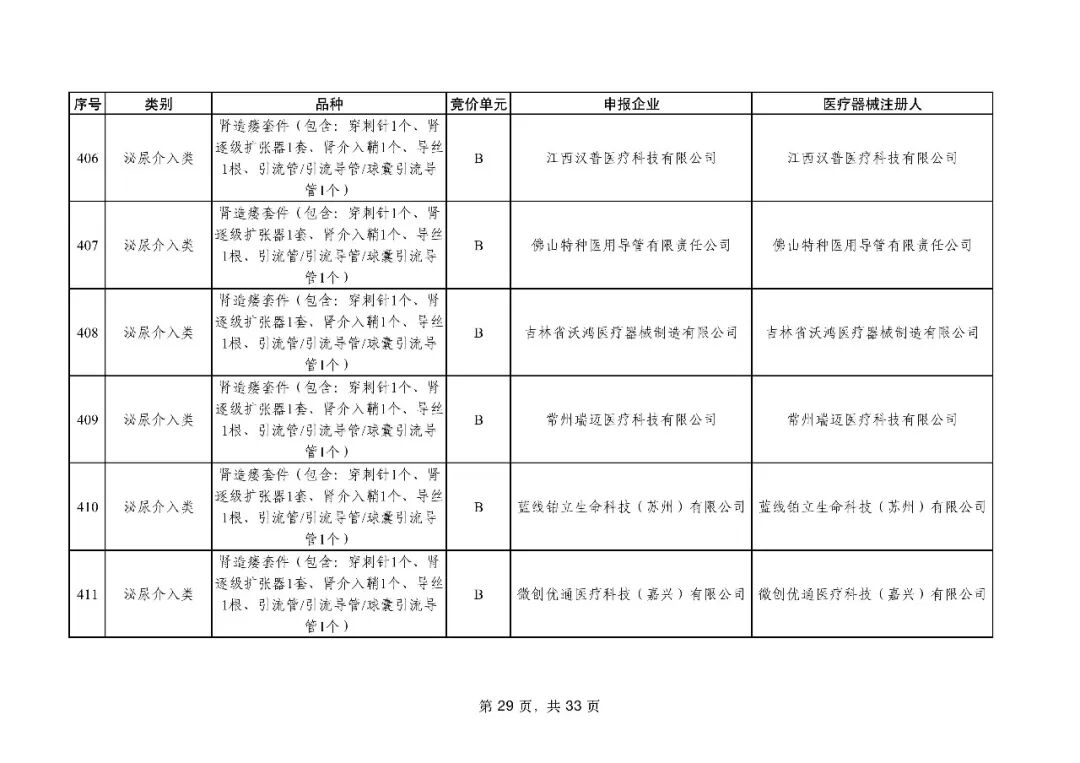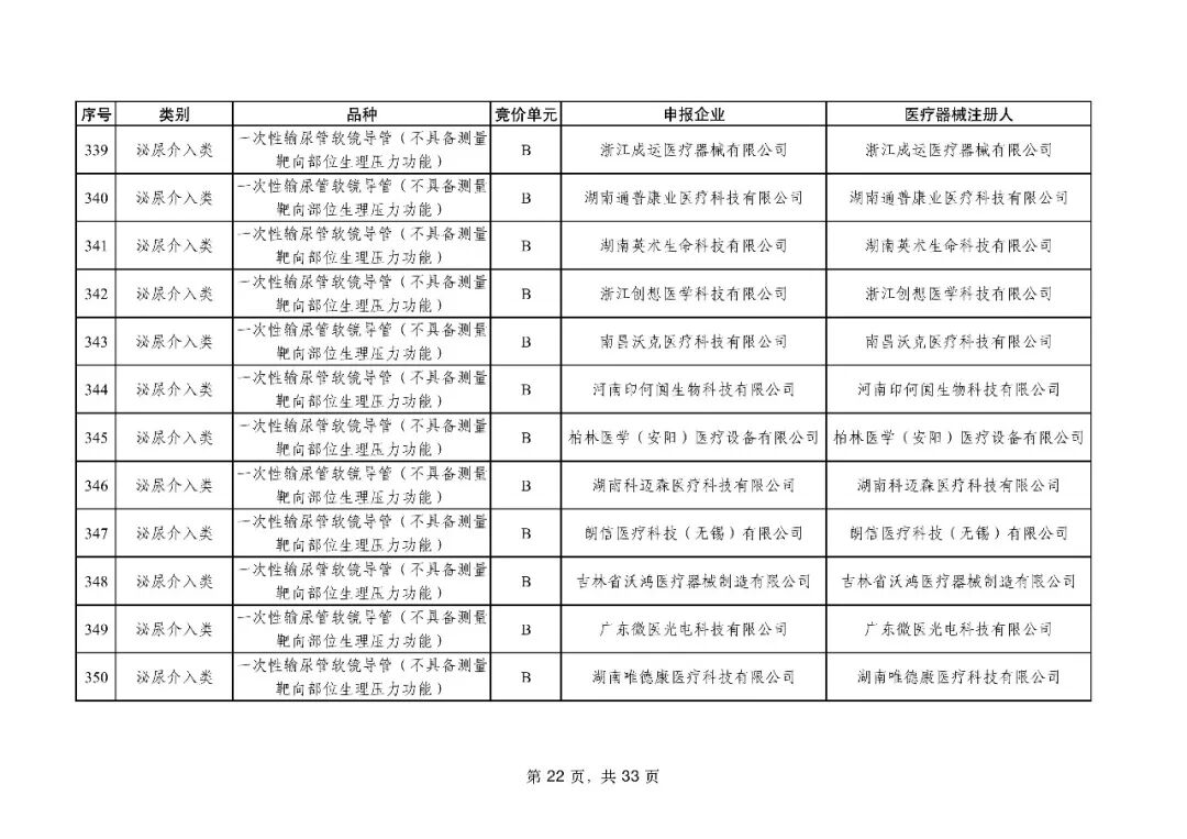 泌尿介入类耗材用于结石取石手术,此前为集采 “空白区”,此次 195 家企业的 454 个产品投标,170 家企业的 398 个产品中选,药物刻痕球囊、测压软镜导管等特殊功能产品也成功中选,可满足临床特殊场景需求。