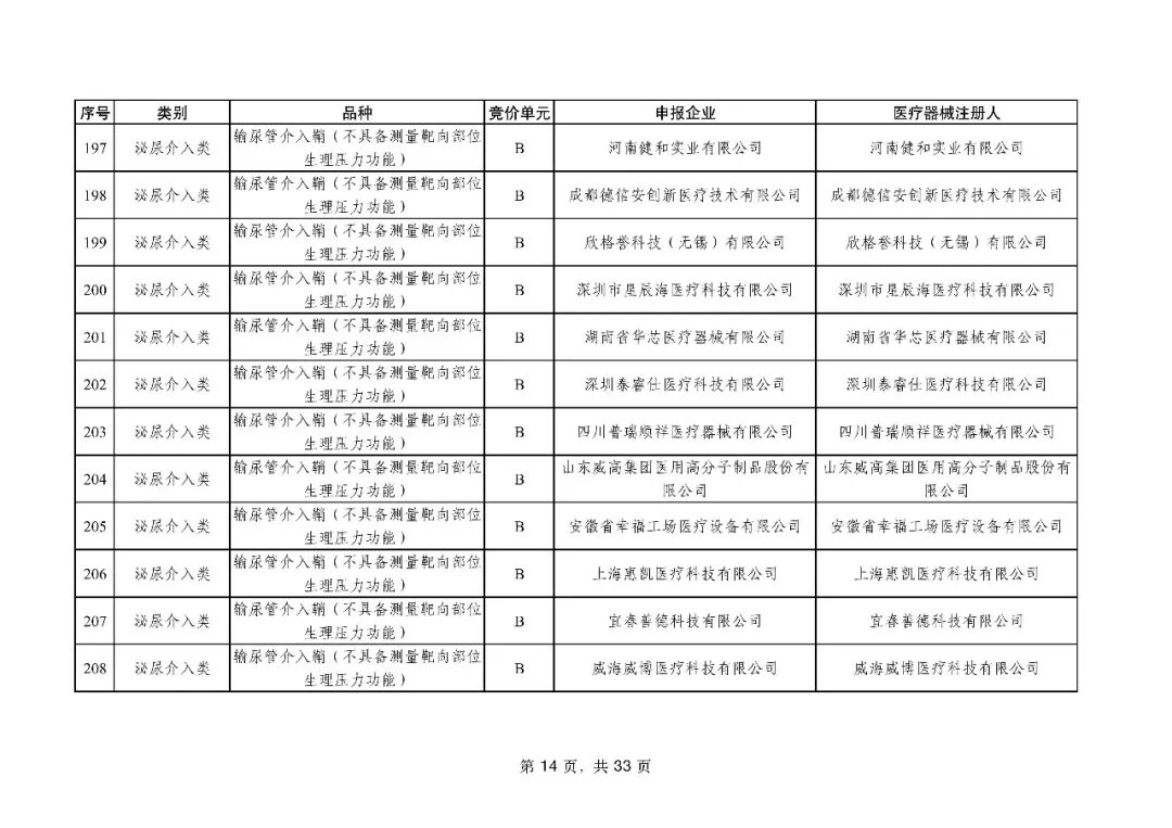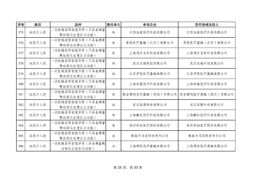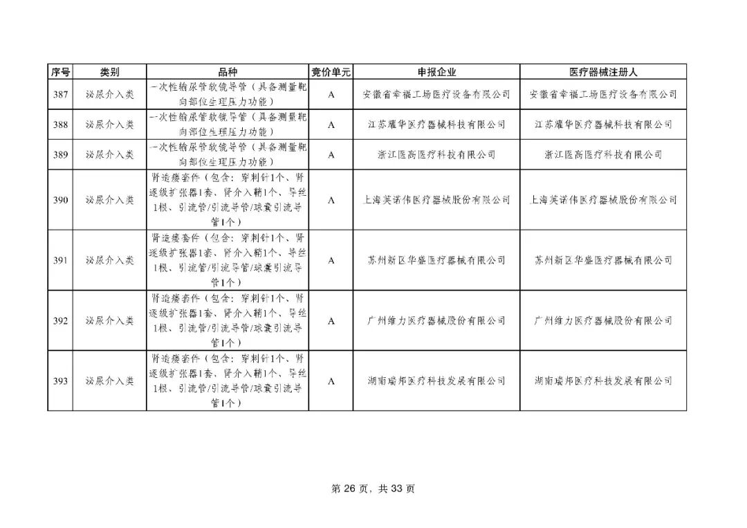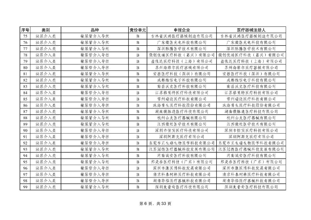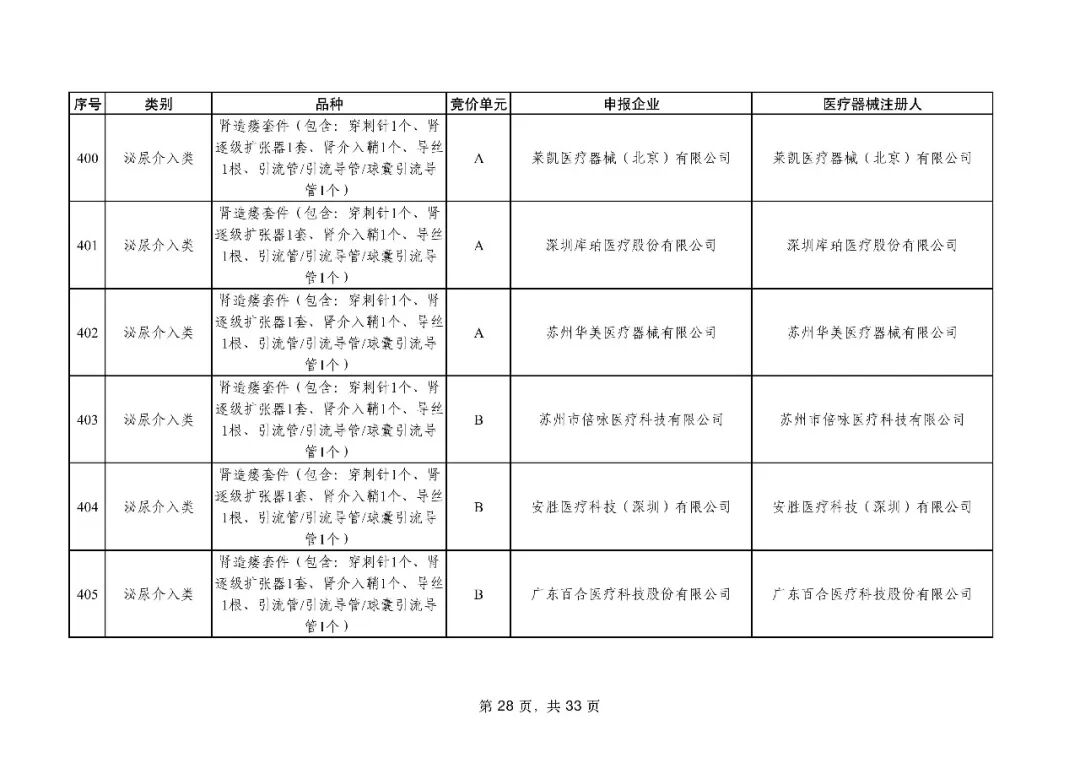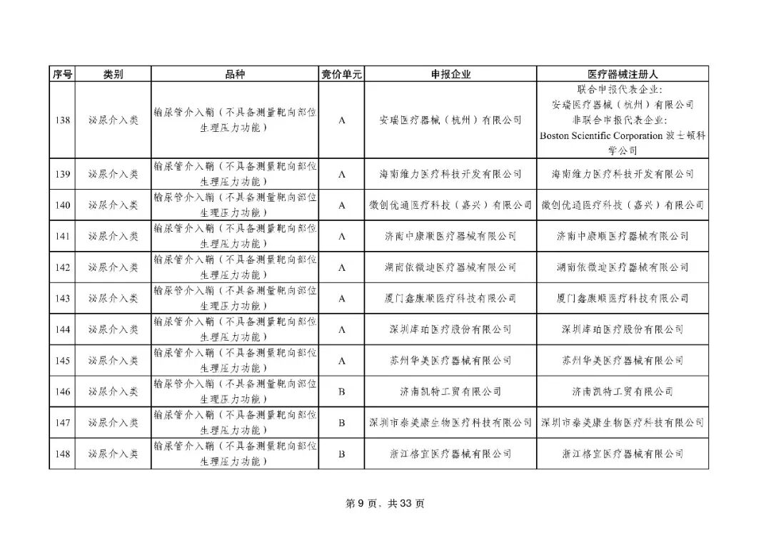泌尿介入类耗材用于结石取石手术,此前为集采 “空白区”,此次 195 家企业的 454 个产品投标,170 家企业的 398 个产品中选,药物刻痕球囊、测压软镜导管等特殊功能产品也成功中选,可满足临床特殊场景需求。