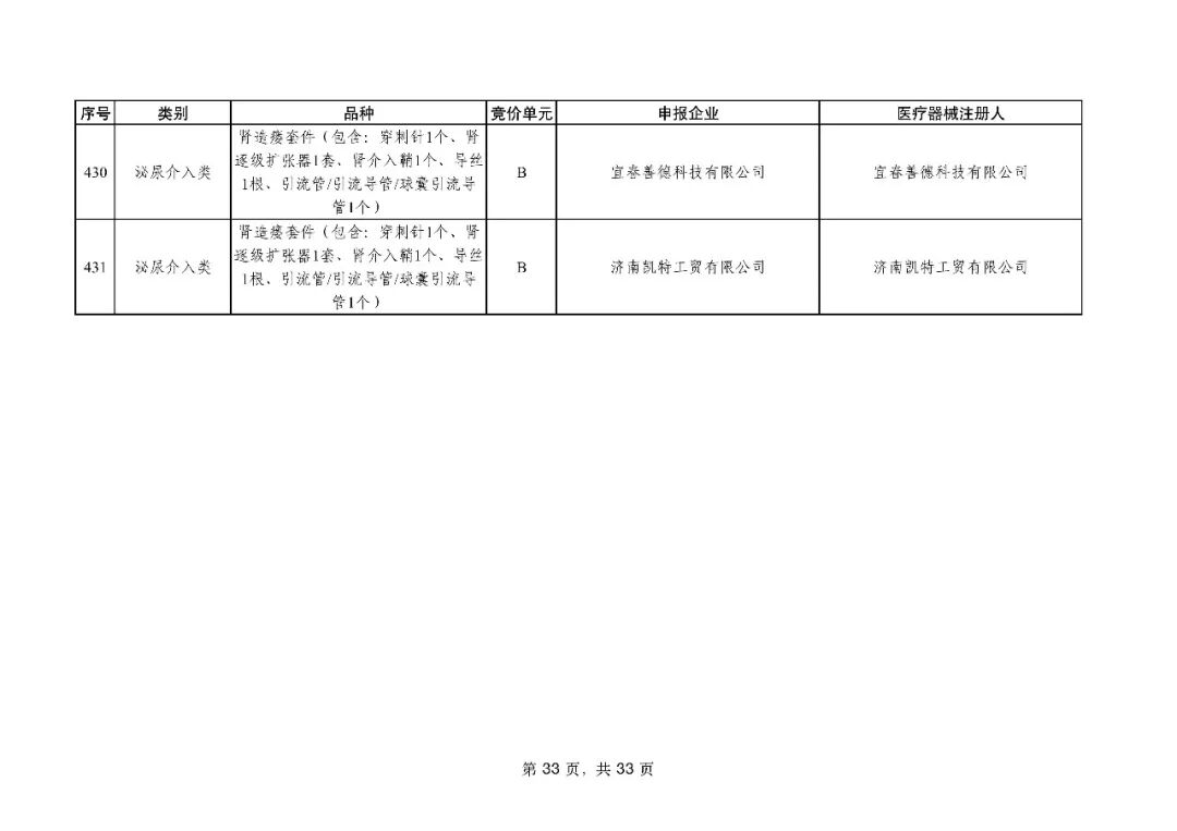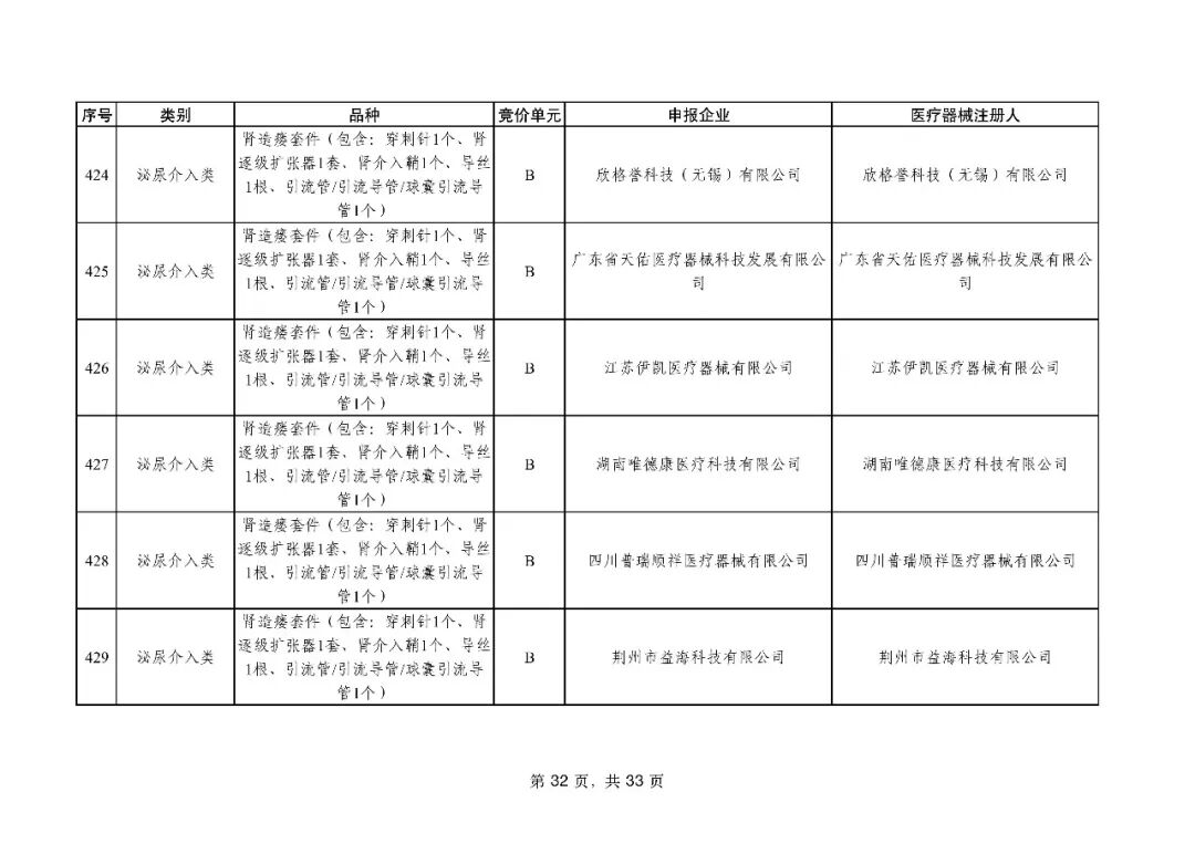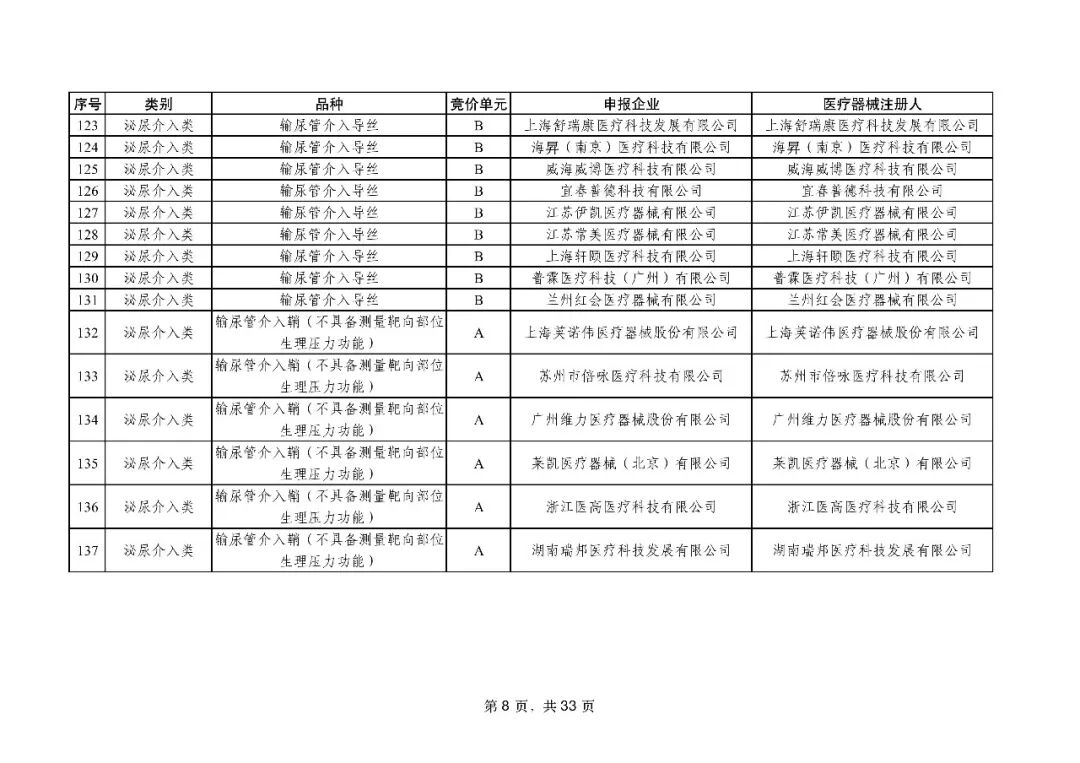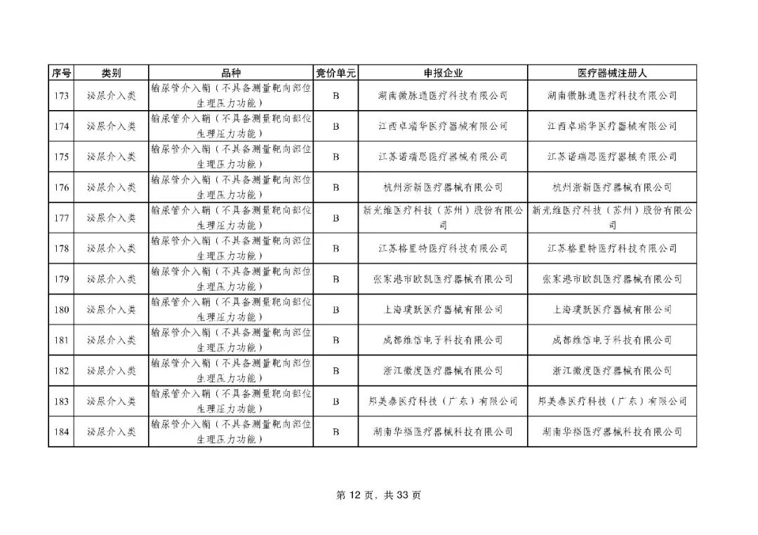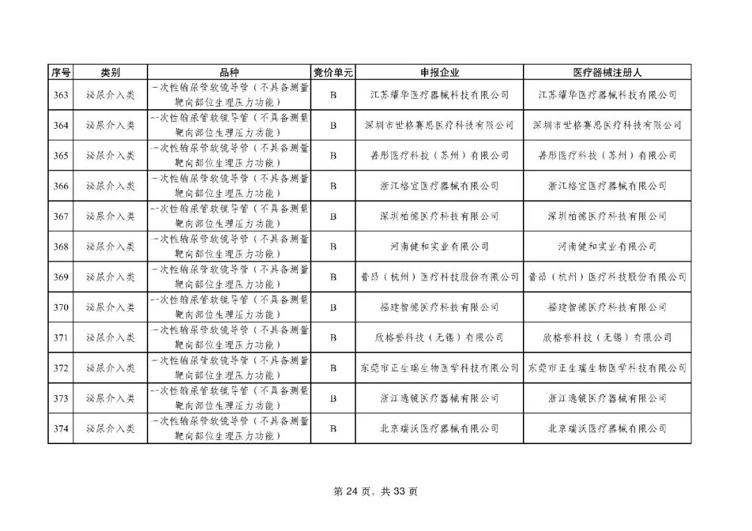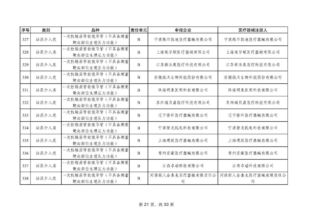 泌尿介入类耗材用于结石取石手术,此前为集采 “空白区”,此次 195 家企业的 454 个产品投标,170 家企业的 398 个产品中选,药物刻痕球囊、测压软镜导管等特殊功能产品也成功中选,可满足临床特殊场景需求。