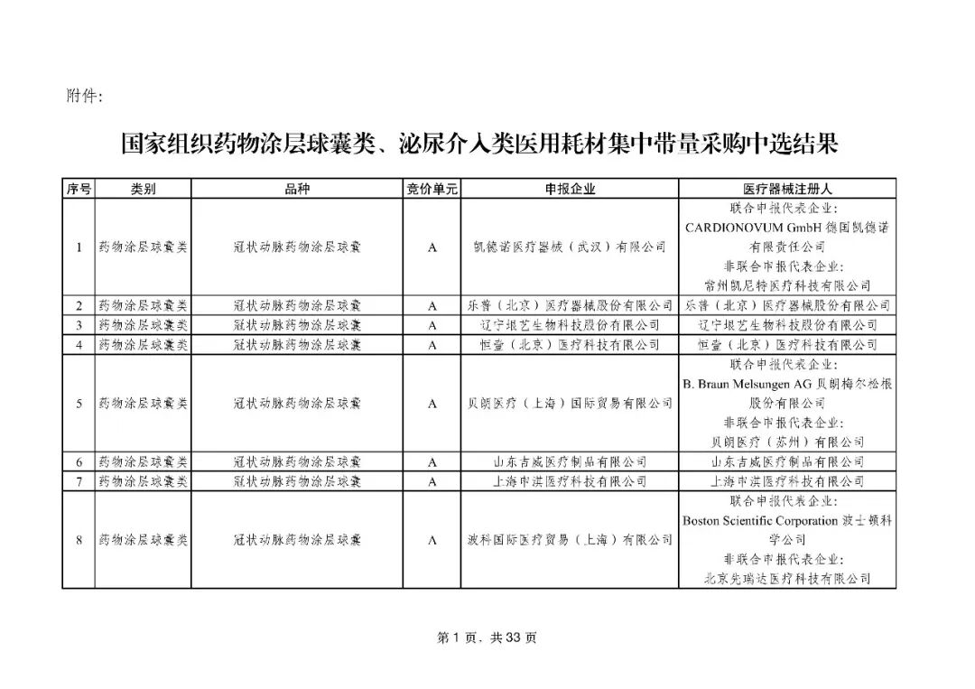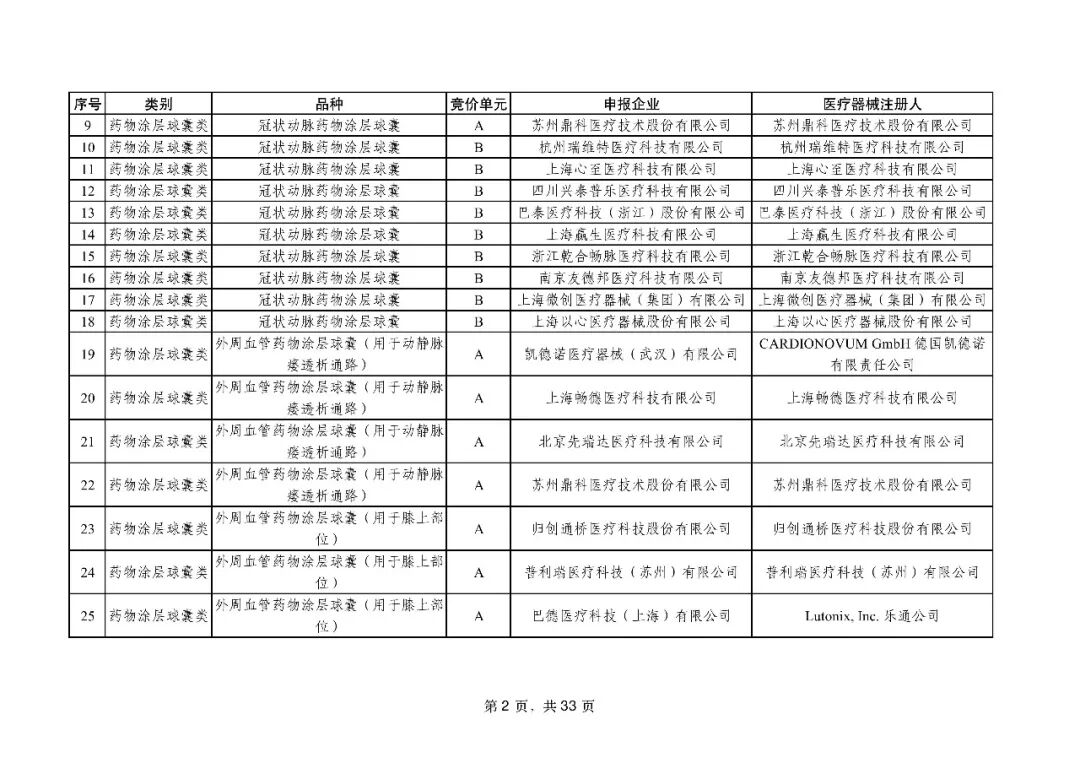 药物涂层球囊可改善血管狭窄,分为冠脉和外周血管球囊两类,本次32 家企业的 42 个相关产品全部中选,与此前集采的心脏支架、外周血管支架形成协同效应,既减轻患者负担,又匹配临床需求。