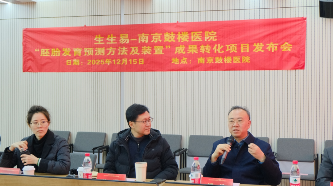 12月15日,生生易-南京鼓楼医院“胚胎发育预测方法及装置”成果转化项目发布会在南京举行。南京市秦淮区委常委、副区长傅浩,中华医学会生殖医学分会主任委员、鼓楼医院生殖医学中心主任孙海翔教授,生生易(北京)科技有限公司总经理张丹,北京大学汇丰商学院创新引擎实验室主任、溪山天使汇发起人许晖,南京市转化医学研究院副院长李智洋先后发言。南京市转化医学研究院技术经理人平台负责人谷娴主持发布会。